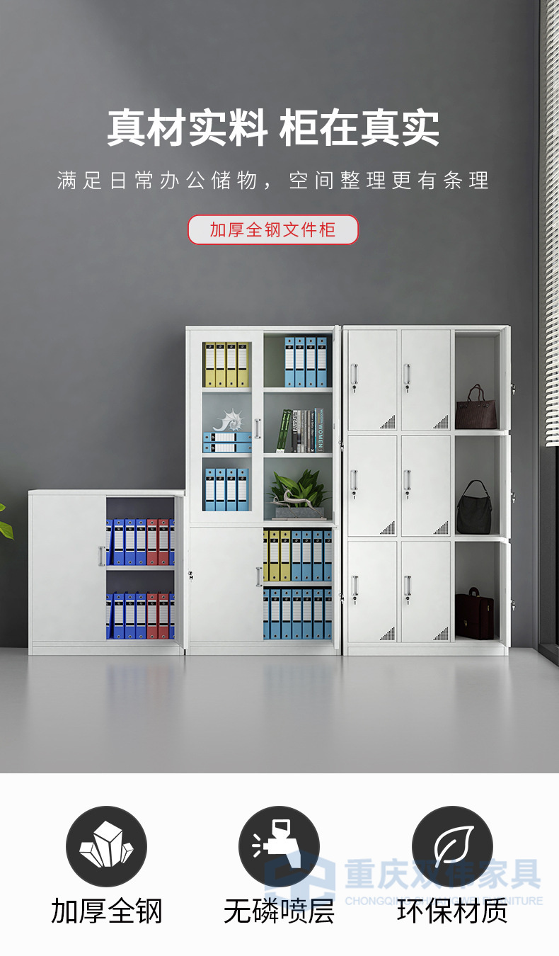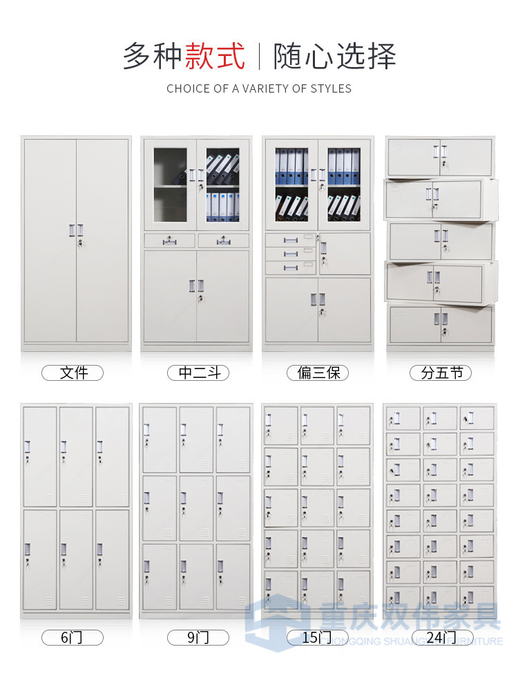 下節(jié)并列2抽屜+1全寬抽屜(雙壁前面板,配PVC內(nèi)嵌扣手/轉(zhuǎn)舌鎖,抽屜側(cè)板配尼龍腳輪)+對(duì)開(kāi)門(mén)(配PVC內(nèi)嵌扣手/轉(zhuǎn)舌鎖/號(hào)插,門(mén)背焊接全長(zhǎng)加強(qiáng)筋);