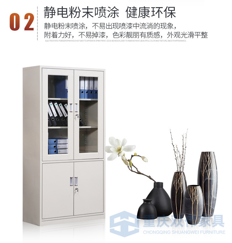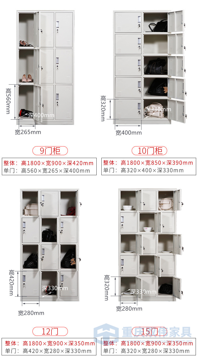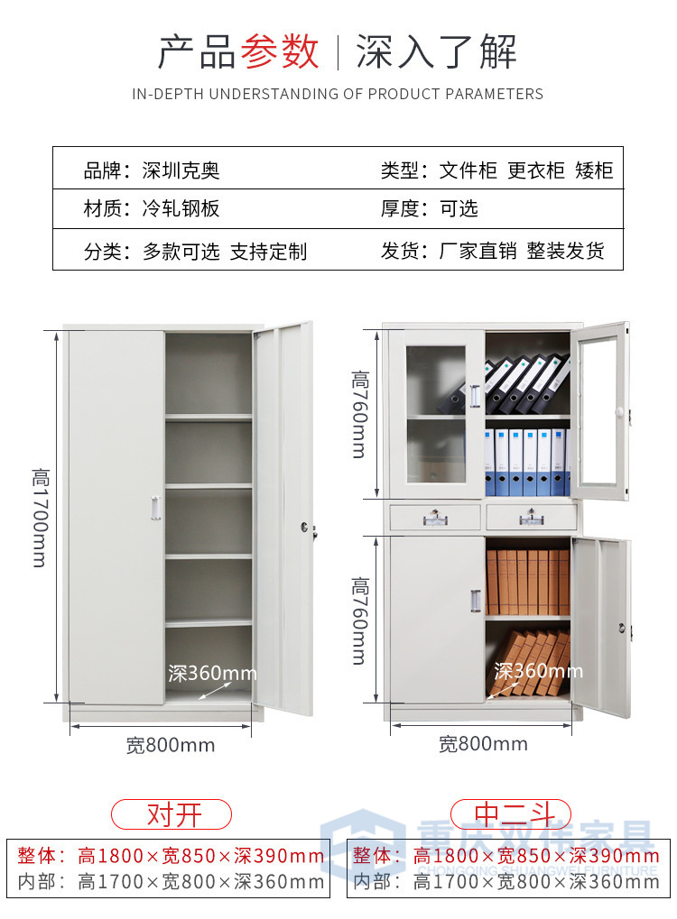 ·分雙節(jié)結(jié)構(gòu);上節(jié)對(duì)開(kāi)門(mén)配PVC內(nèi)嵌扣手/轉(zhuǎn)舌鎖/號(hào)插,下底配4個(gè)防震墊;